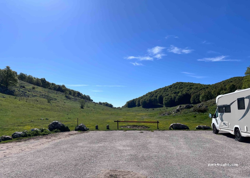 Marsia è una località sciistica non in decadenza… ma decaduta di brutto… però la natura intorno è bellissima! Parcheggio privo di qualunque servizio e non c’è alcuna connessione né telefonica né internet! Ma il posto è favoloso. Nessun problema di accesso anche per mezzi grandi.