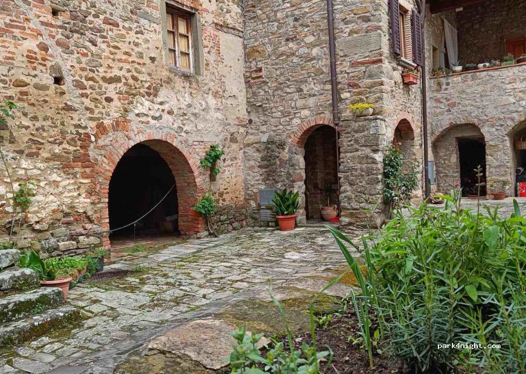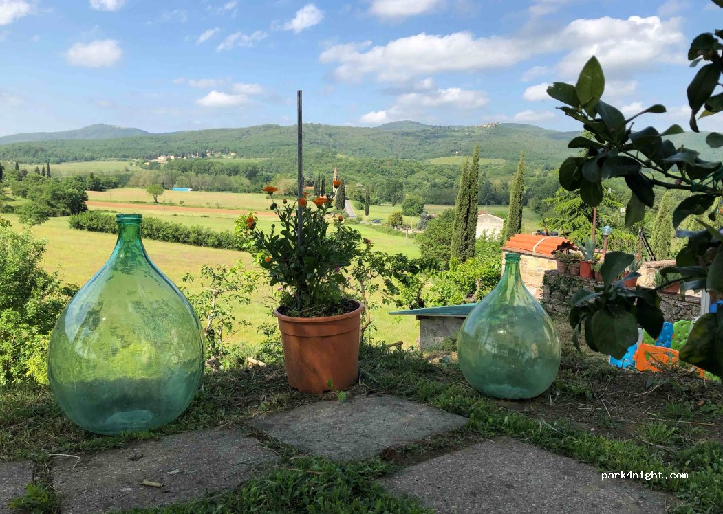 Aire de stationnement privé avec une belle vue sur le Val d’Ambra . Endroit calme et sécurisé sur les ruines d’un ancien château. Entre Florence et Sienne c’est un beau point de départ pour découvrir la Toscane. À proximité des sources d’eau chaude . Au plaisir de vous accueillir chez nous.