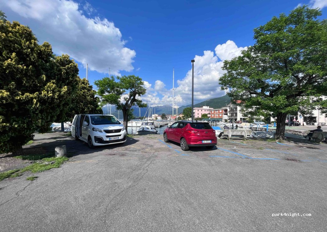 Parcheggio del porto molto carino per sedersi di fronte al lago e mangiare qualcosa.