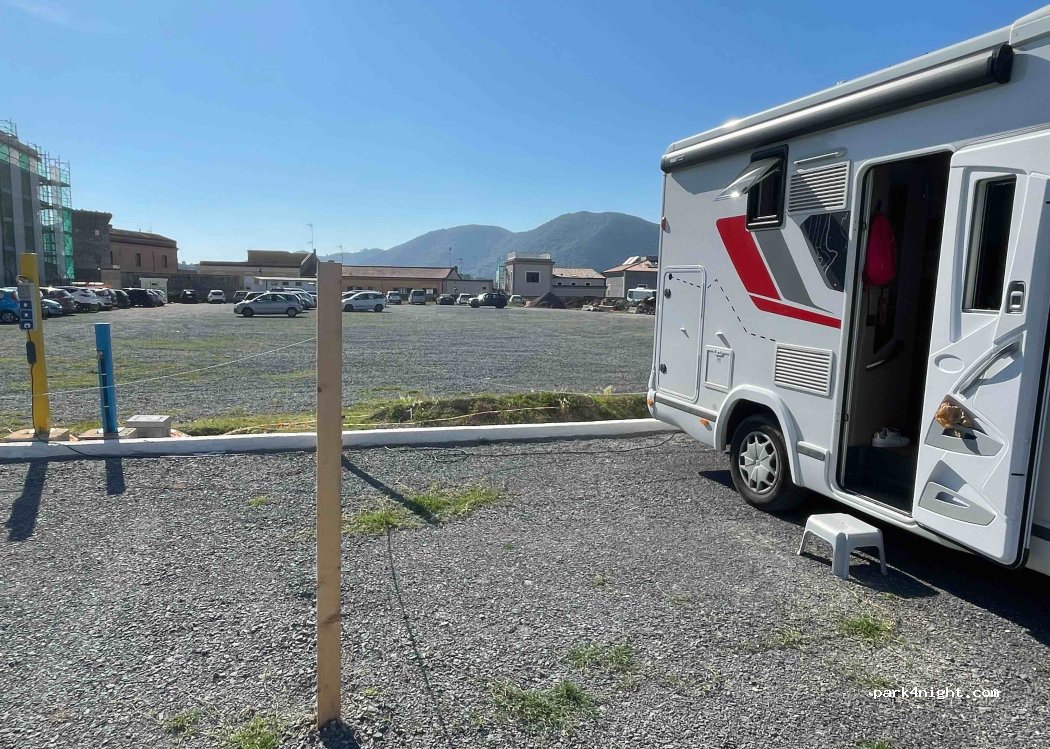Comoda area gratis vicino al centro, con allacciamento 220 e rifornimento acqua tutto gratis. Difetto mancano scarico acque grigie e nere, però ci sono i bagni.