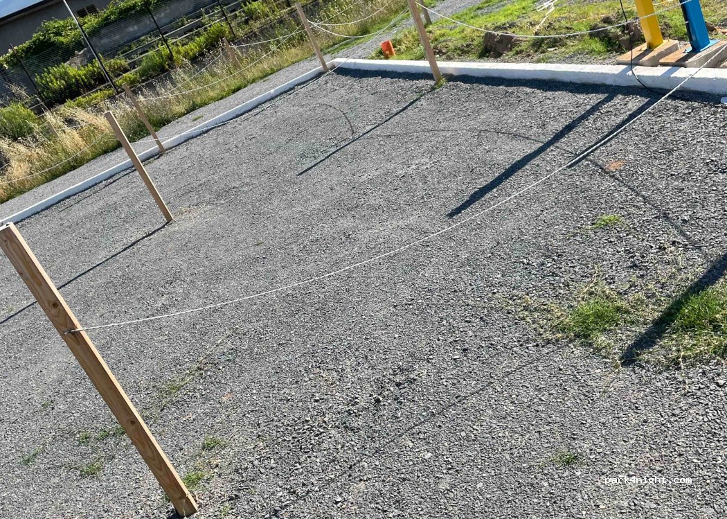 Un semplice parcheggio delimitato, ma occupato, di sera, dalle auto. Né acqua, né scarichi. La corrente non so. Bagni a 50 m (sono le toilettes pubbliche del parcheggio auto). Silenzio e aria fresca la notte.