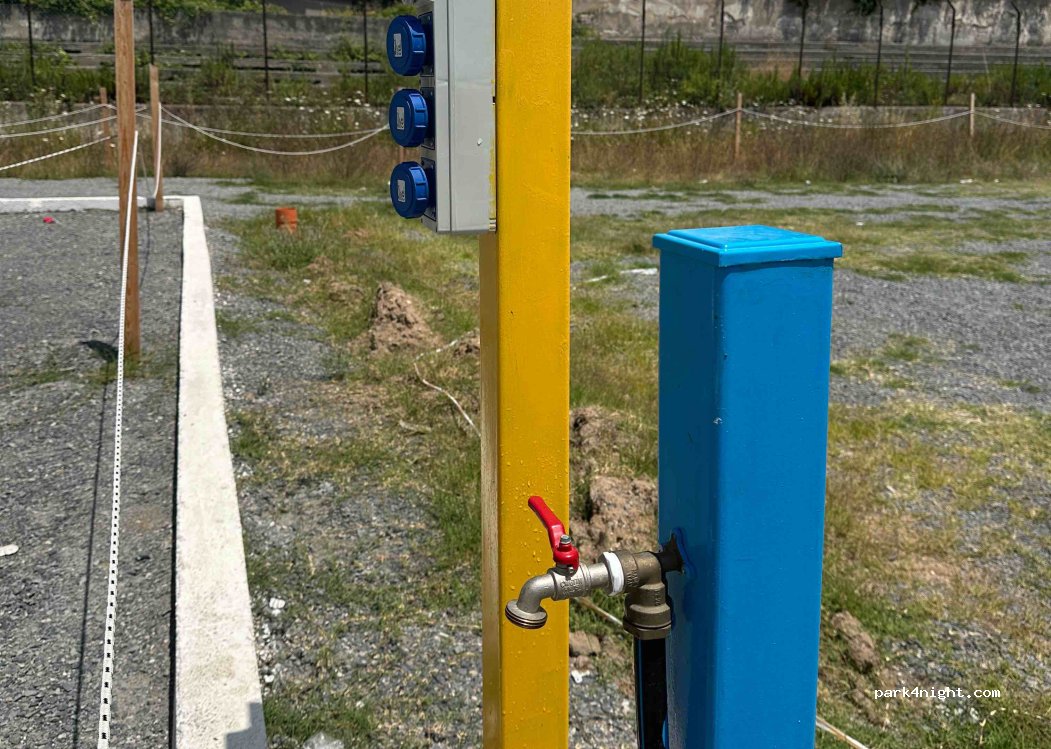 ottima area sosta camper super , ora manca solo lo scarico acque grigie e nere che stanno facendo ci vorrà un po' di tempo , gratuito acqua ed elettricità.