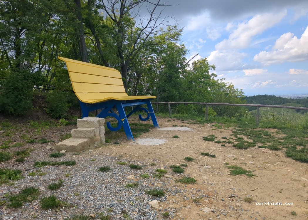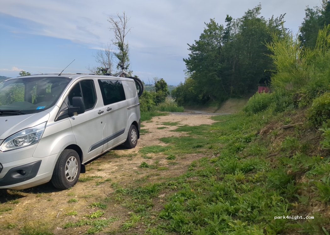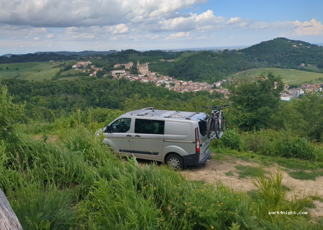 Very nice view over Ottiglio. Quite uneven, but that didn't bother us, but probably more suitable for smaller vehicles. Directly under the "Big Bench" and on the road, but hardly any traffic.