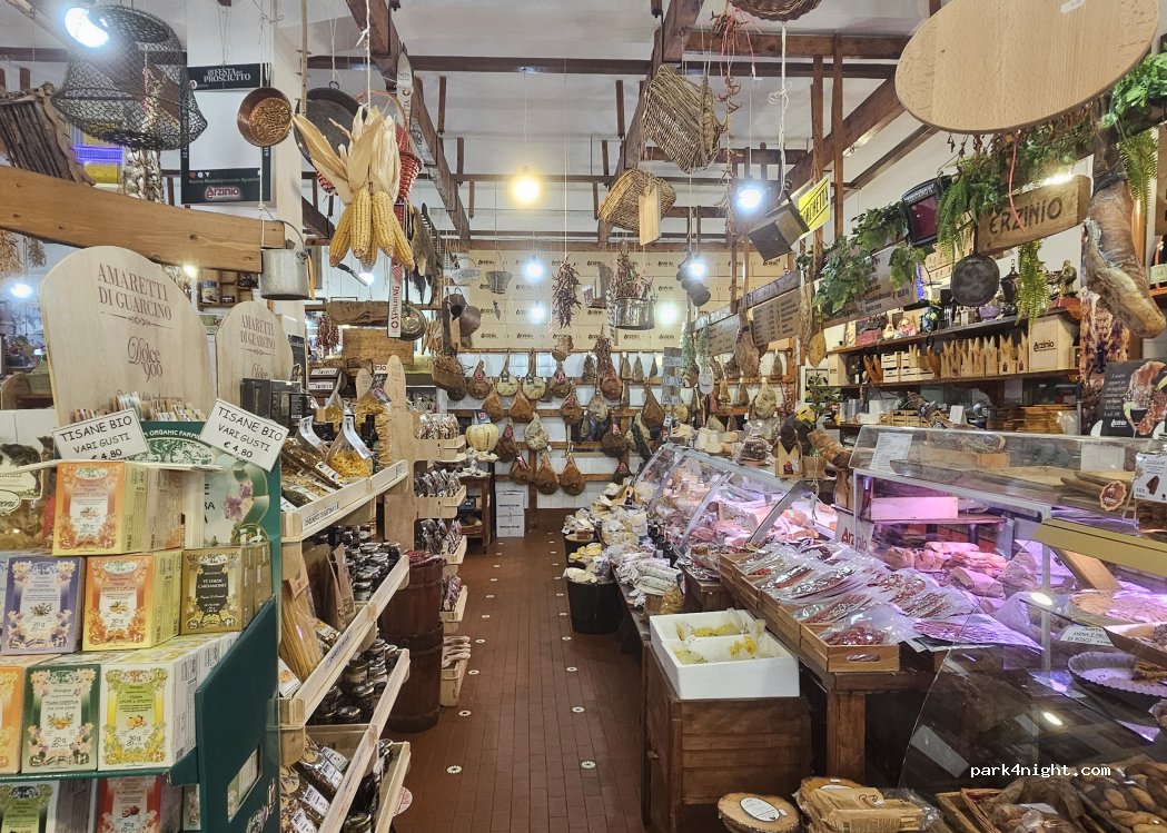 Precioso parking con todos los servicios. ¡Increíble tienda de barrio donde podrás comer excelentes comidas o comprar jamón típico italiano y otros productos de productores locales!