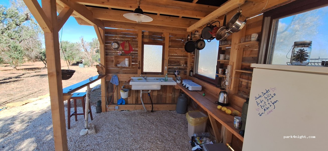 Liebevoll gestalteter Ort. Wir wurden herzlich empfangen und haben uns sehr wohl gefühlt. Einschlafen unter den Olivenbäumen und die Ruhe genießen. Wer die Natur schätzt und auf Ökologie wert legt, ist hier genau richtig. Es gibt eine schöne Outdoorküche, ein kleines Badezimmer mit Warmwasserdusche und Trockentrenntoilette sowie ein Outdoor-Pissoir. Mein Hund war sehr willkommen.