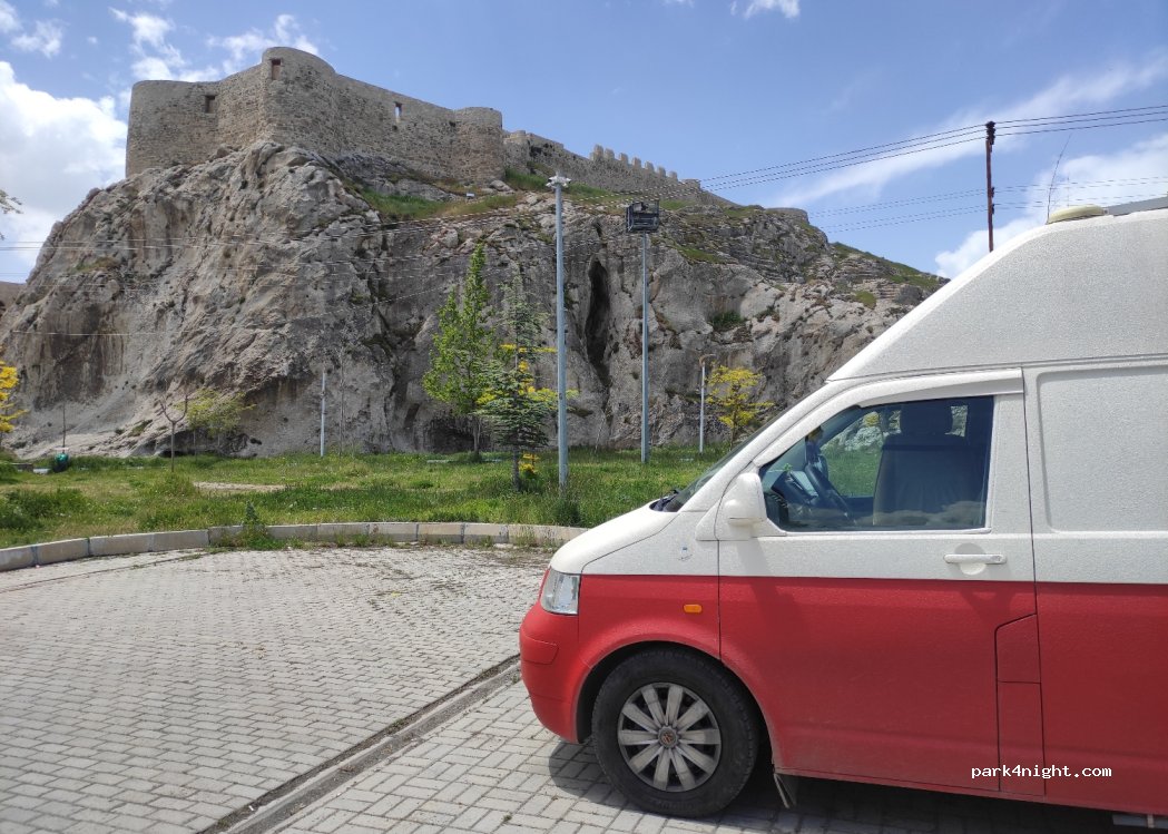 C'est le parking du parc public, près du Château de Van. nous sommes restés deux nuits. si calme. pendant la journée, les gens viennent pique-niquer, mais la nuit tombée, cela devient calme. Le château de Van est l'un des plus grands châteaux de Turquie. Le musée Van est également accessible à pied.