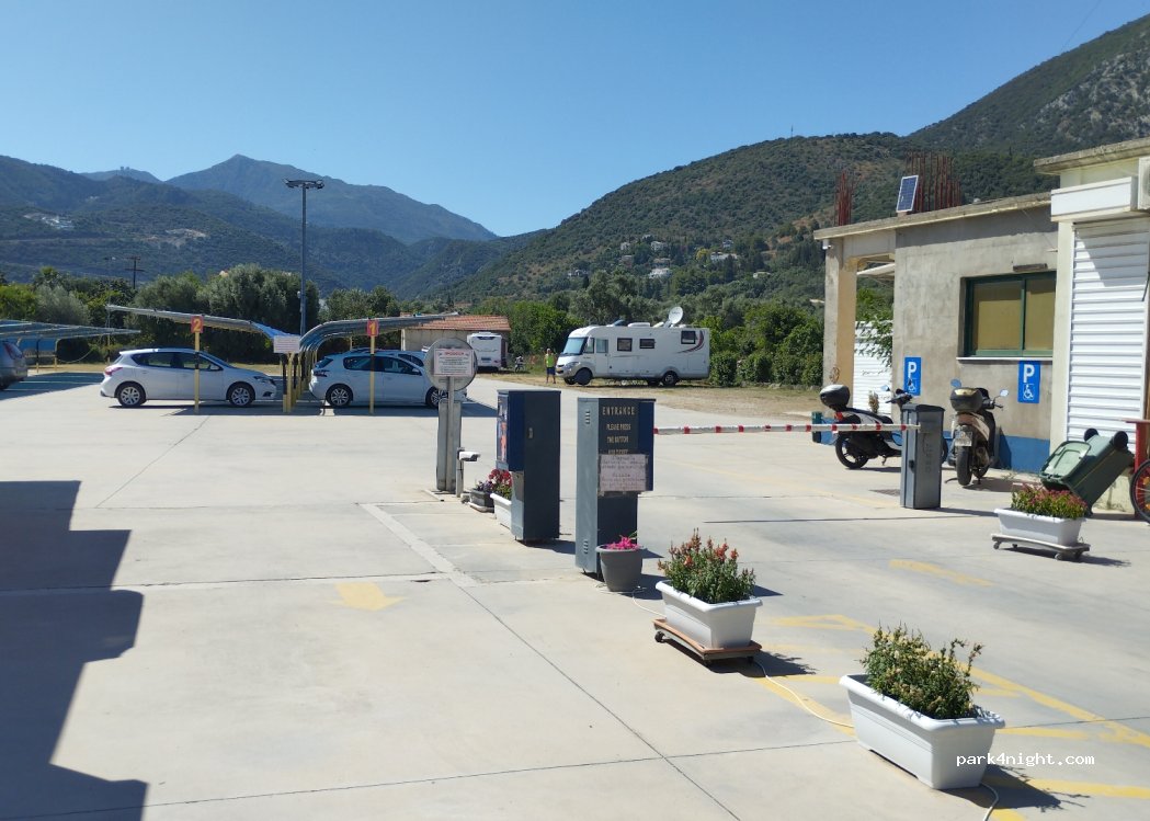 Parcheggio per camper con acqua potabile e scarico delle acqua nere. Vicino alla spiaggia e all’area pedonale dove ci sono ristoranti bar negozi ecc. Non è ombreggiato ma è molto comodo come base per poi girare su Lefkada e non solo. 10€ x notte.
