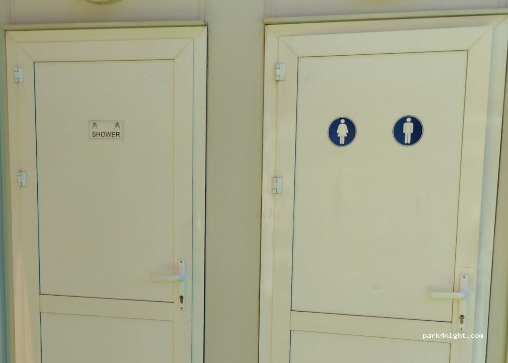 Parkeerplaats voor auto's, willen verdienen aan campers. Mensen komen midden in de nacht terug naar hun auto's. Erg luidruchtig! Toilet en douche, afvoerbuis. De prijs is 20 euro per nacht, incl stroom. Maar er is 1 stopcontact, waar verdeelstekkers aan gaan voor iedereen. Niet ideaal en veilig. Stroom viel vaak weg. Camper staat op dor gras met stenen. Afschuwelijk! Ik raad deze plek niet aan!