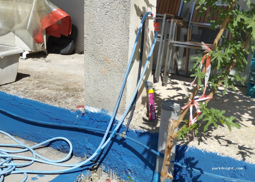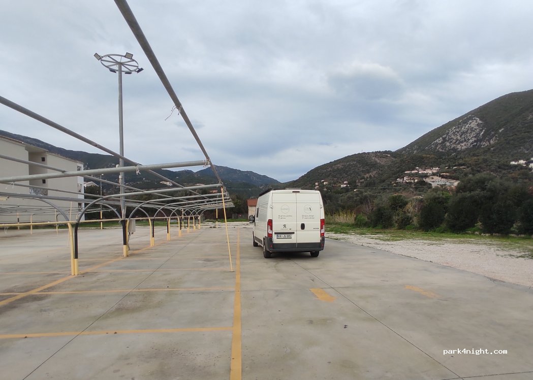 Because it was the off season we were able to park right next to the electricity plug and the guy who let us in(owner of a small bar nextdoor) was really nice and welcoming. You have clean toilets with shower (cold one). Electricity costs 5e and parking spot is 10e. We walked to Nydri waterfalls from here.