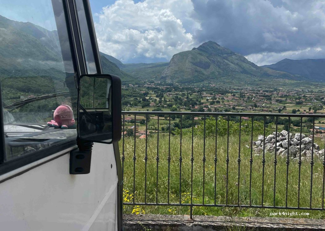 Two parking spots nearby a school in Teggiano. Very nice view, no services.