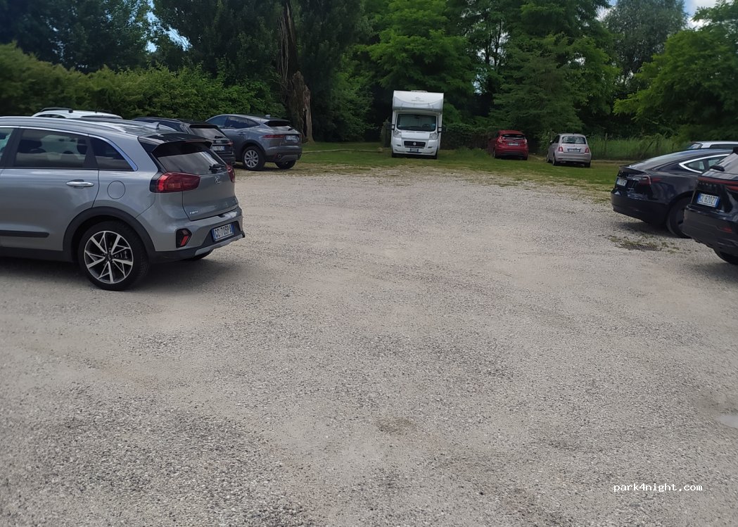 Parcheggio su sterrato con possibilità di ombra, vicino al centro e vicinissimo alla lavanderia automatica. Molto silenzioso la notte