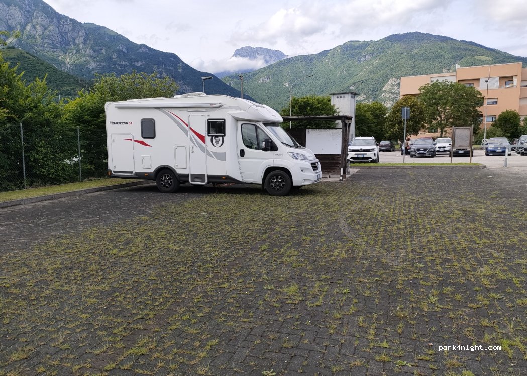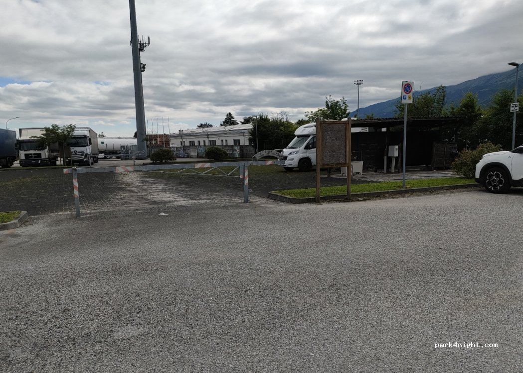 Free parking area, closed with a barrier. To enter, ask for the key at the Agip petrol station opposite.