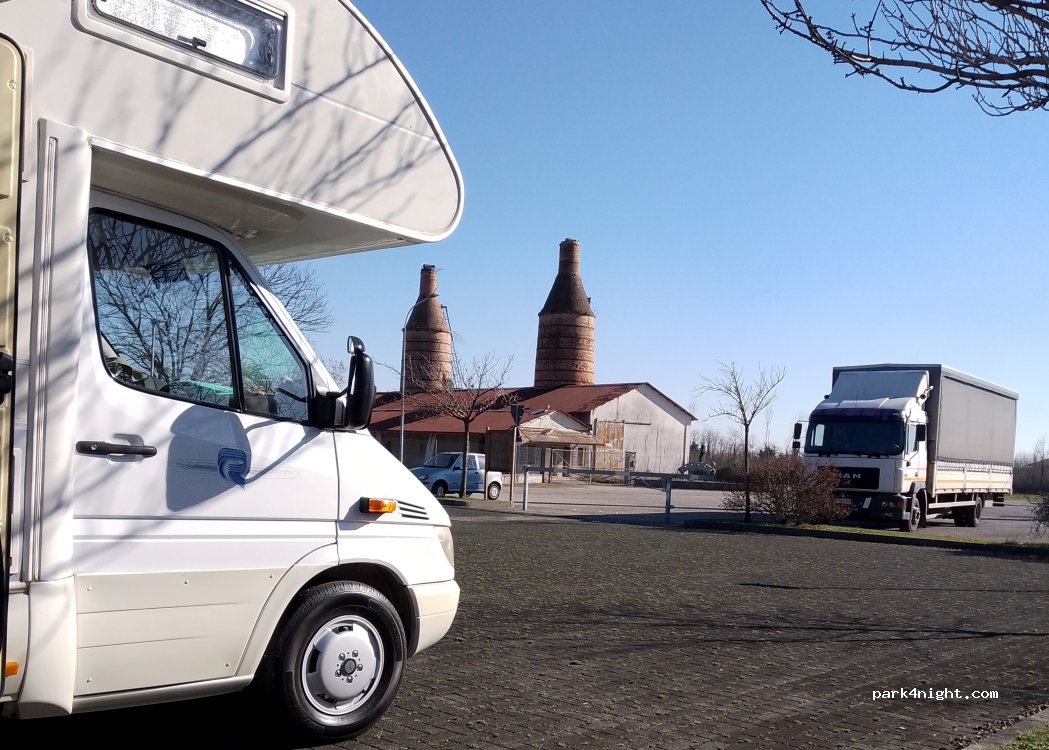 Aire de stationnement gratuite, fermée par une barrière. Pour entrer, demandez la clé à la station service Agip en face.