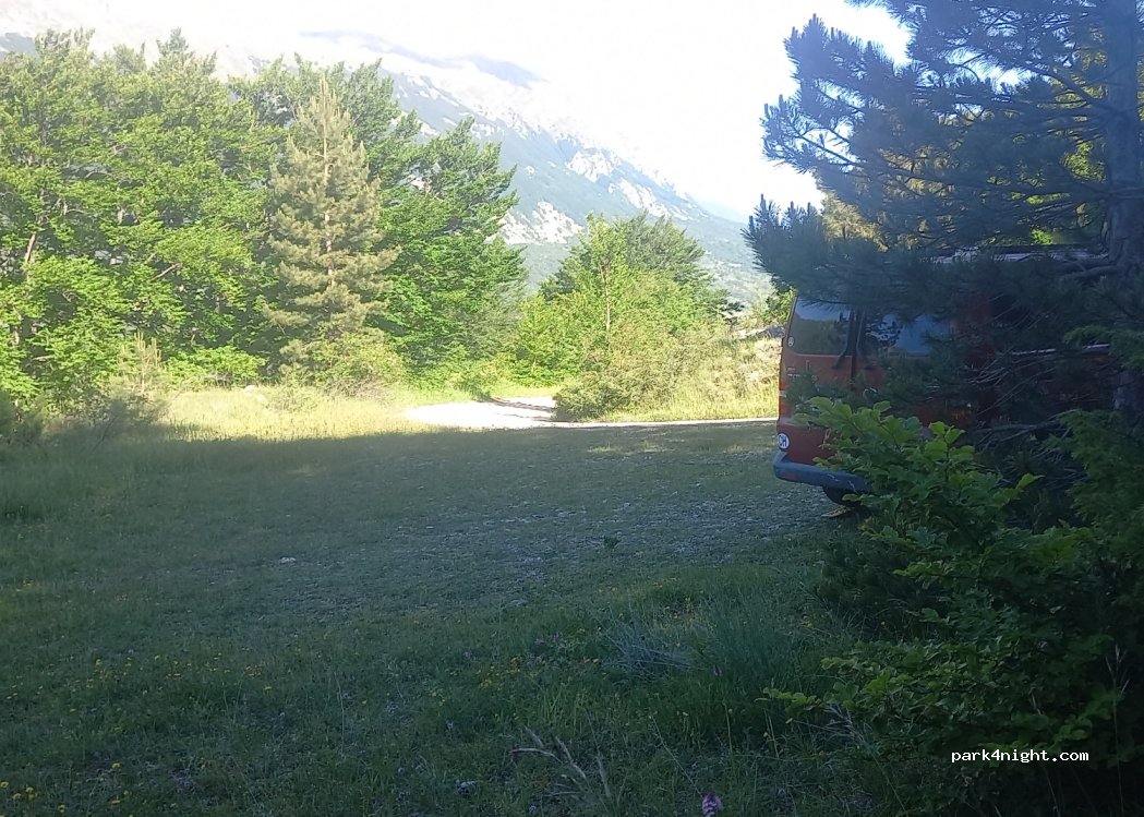 A 500m. dalla strada principale. Pochissimo traffico. Bel posto per la notte... con vista sulle montagne. Aree circostanti. Pendenza molto leggera. nessun servizio.
