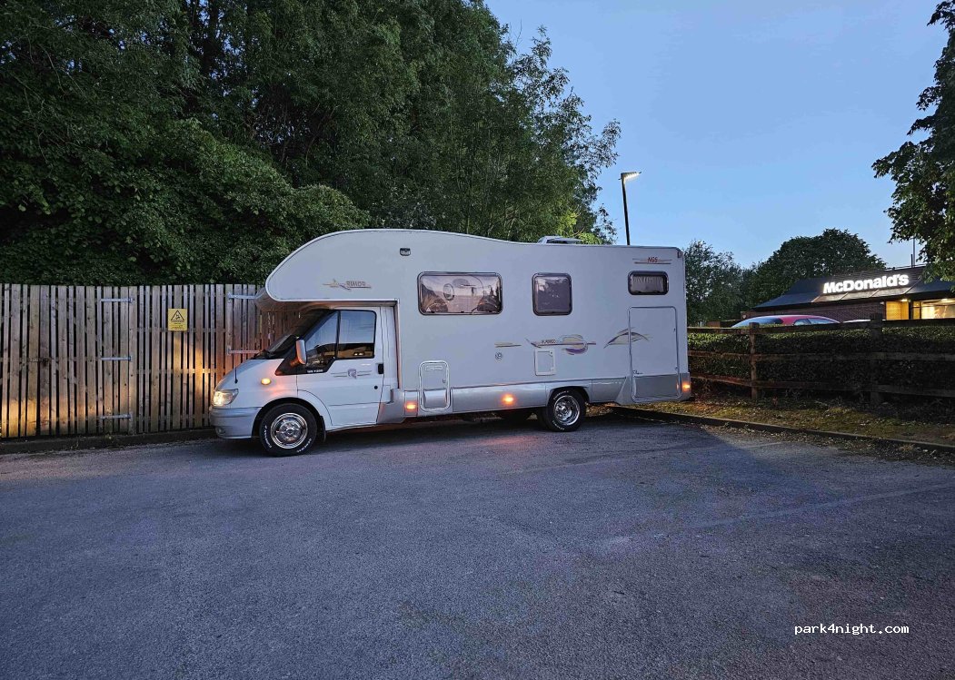 Good but small stop over. Slight slope. Right next to McDonald's, hotel and Hugry Horse pub. Tesco also near.