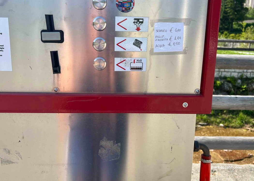 sistema di carico e scarico funzionanti. per arrivarci si passa per una stradina stretta, sconsiglio a chi ha un camper più lungo di 6.5 metri