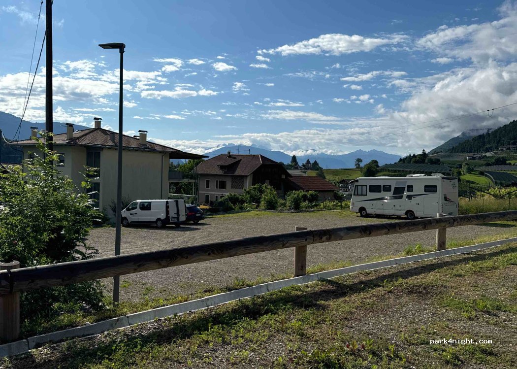 Large parking lot where you can park your motorhome. Of course, no camping with a table and chair. Straight and clean between the vineyards and straight.