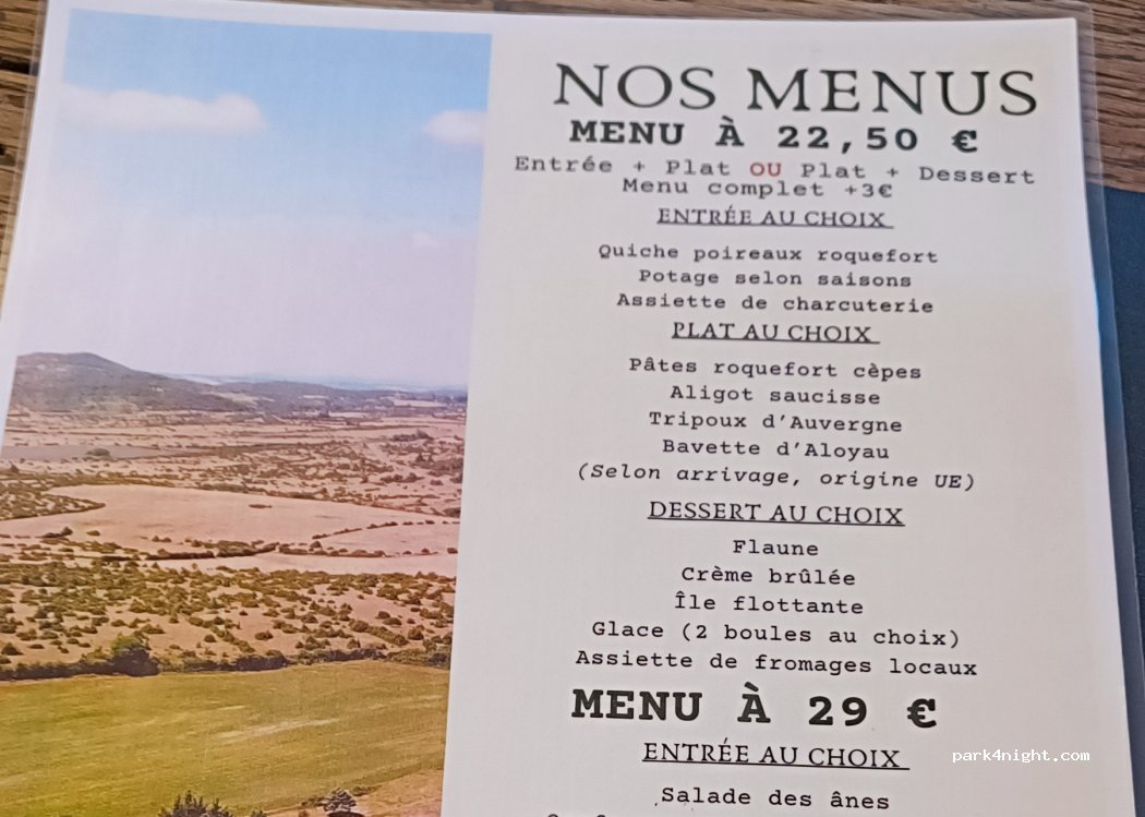 Excellent accueil. Un cadre et une atmosphère digne de ce que l'on attend d'un restaurant. Des recettes traditionnelle avec des produits de région cuisiné avec brio.Pas une fausse note Possibilité de passer la nuit sur leur terrain à côté des ânes.... c'était magique.