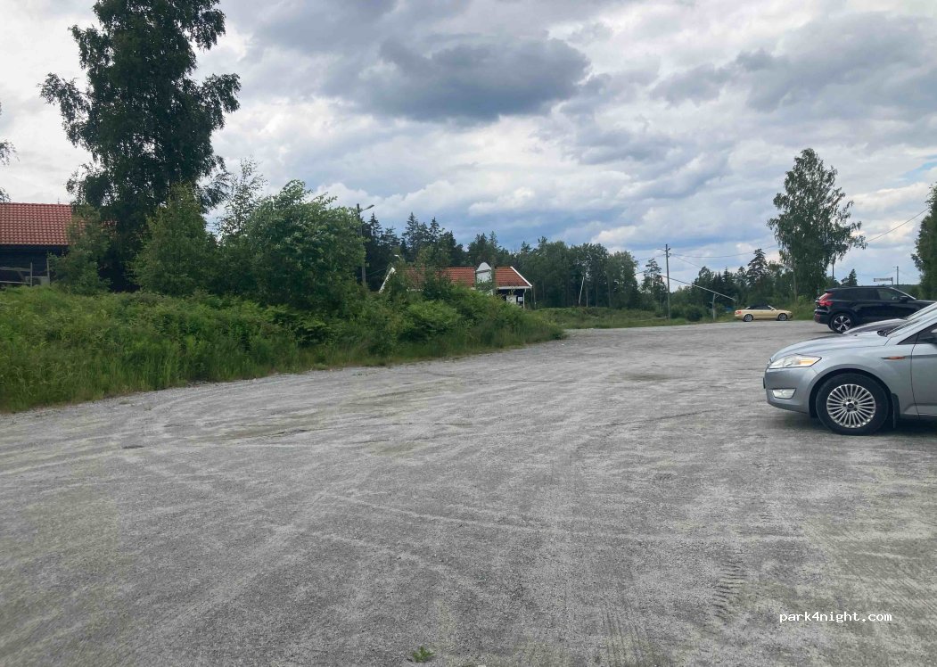 Parking lot of the “Skihytta Spydeberg” winter sports ski area. Closed in summer, large, quiet, level parking lot. Right on the road but probably very quiet at night. A sign says “Parking 50 kr” but since there is no payment option, this probably only applies in winter. From here you can go on wonderful hikes through the forest, to Lake Langtjern, for example. No prohibition sign w/ overnight stay