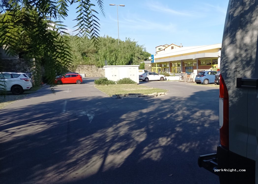 Abbiamo dormito una notte in questo parcheggio molto tranquillo. Non è un' area attrezzata, ma si trova in una posizione strategica poiché è vicino all'autostrada. Essendo il parcheggio di un supermercato sono attive le telecamere.