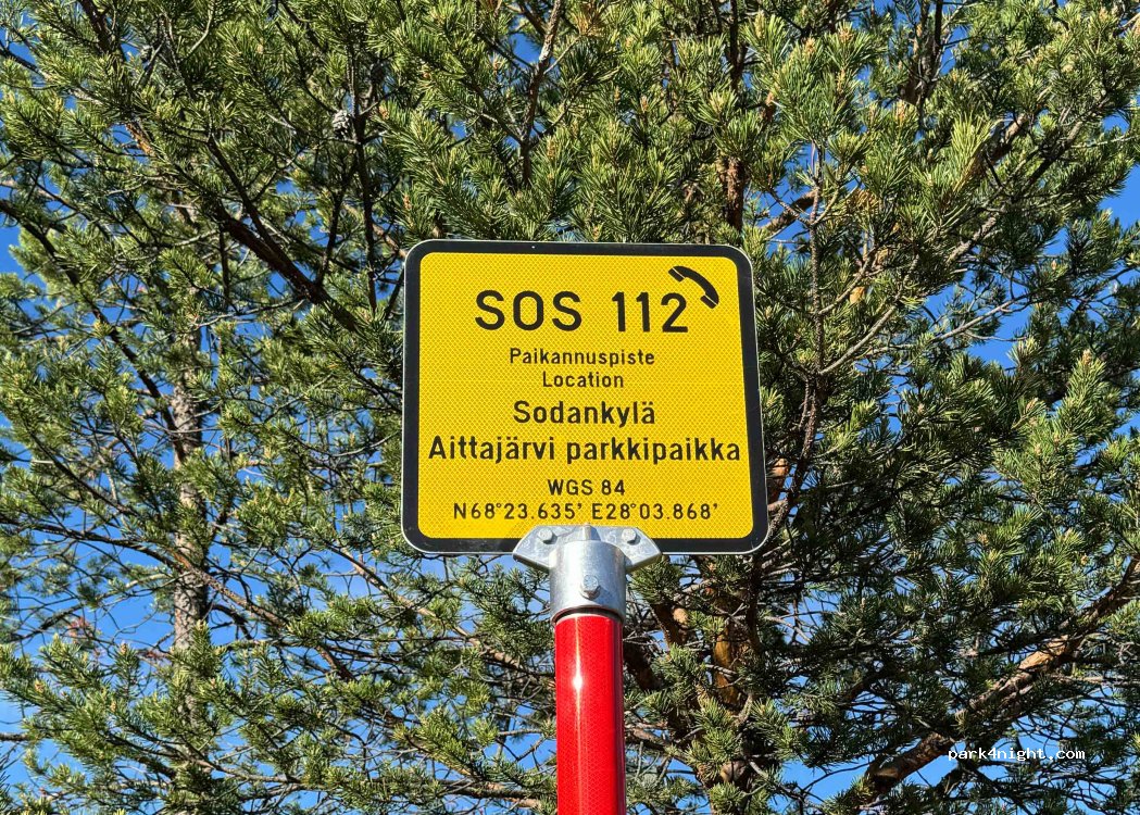 Parkplatz Aittajärvi - Urho Kekkonen Nationalpark. Ausgangspunkt für Wanderungen in die Remote/Wilderness Zone des Nationalparks (ohne markierte Wanderwege!). Es gibt eine Trockentoilette und Möglichkeiten den Müll zu entsorgen. Kein Handyempfang im großen Umkreis. Zufahrt über eine lange Schotterpiste, die ca. 17 km südlich von Ivalo von der E75 abzweigt.
