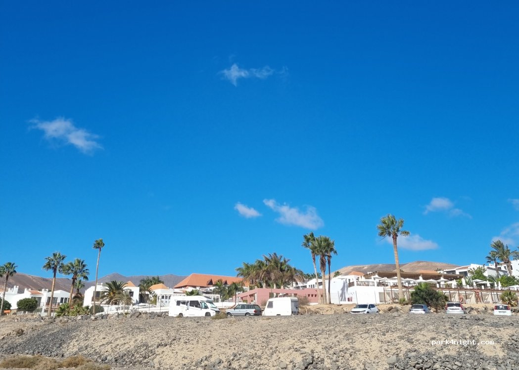 Originally we wanted to stay somewhere else but the site was to windy. So we search through google maps and looked for vans in the near of the ocean. Somehow we ended up here. It is between hotels and the beach is just a few meters away. Same as toilets and a shower. When you walk along the beach for 5 minutes there is a beach bar and I think a windsurf/kitesurf school. It’s not so windy here because the hotels behind us are taking the wind. We still have the view and are the only ones. We asked a baywatch guy if we can stay here over the night and he told us that it’s no problem. In the near are more bars and when you drive for a few minutes there is a big supermarket. I really recommend this place for vans if you want to stay in the near to morro jable but don’t want to stay over the night directly next to a road. It’s peaceful and you get free music from the hotel ?. You can have 3 hours free WiFi from the hotel.