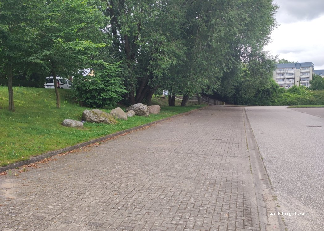 In an Aldi parking lot. Very quiet location. Ideal for an overnight stay.