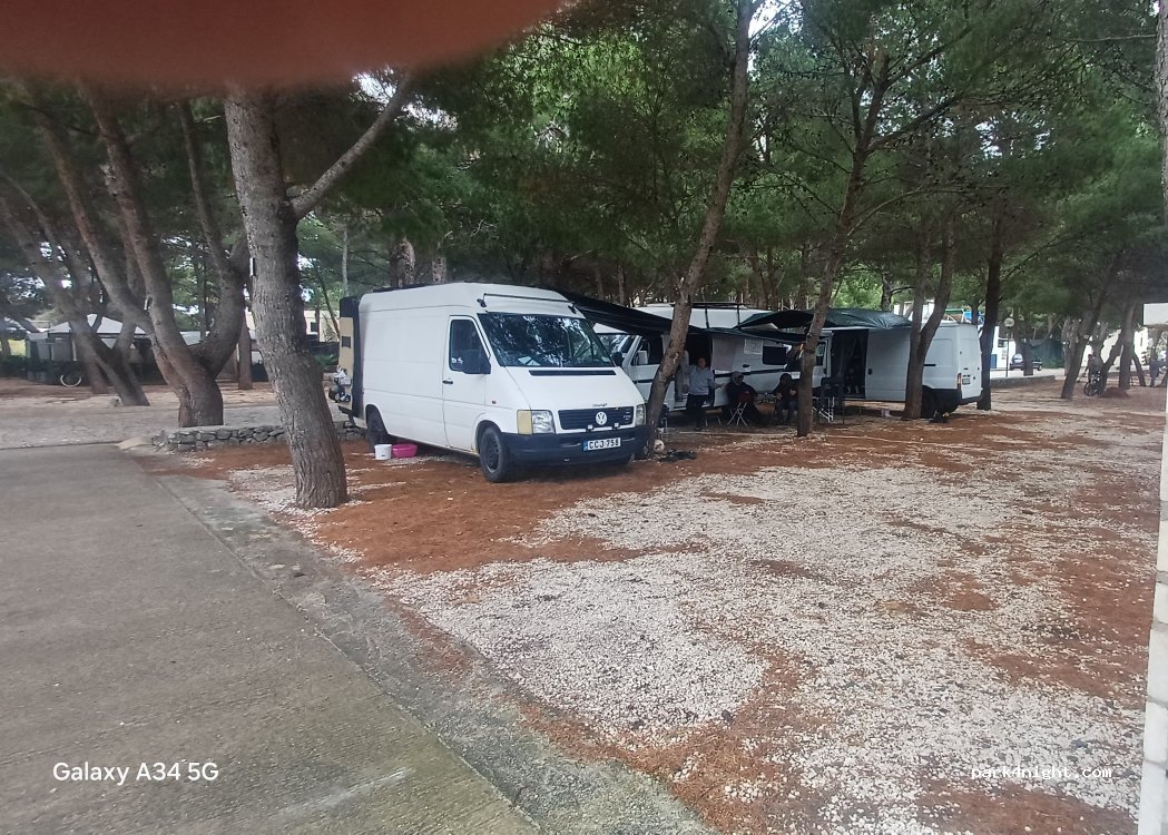 Camp has a lot of shade (big Pine trees), 10 min walk from the beach and 15 min from the center, with a lot of restaurants. There is a shop, pool in the camp. During the weekend is noise, there is a lot of one day guests as well. It can get a bit annoying. The electricity is not very strong. Overall it's an OK camp for a few night.