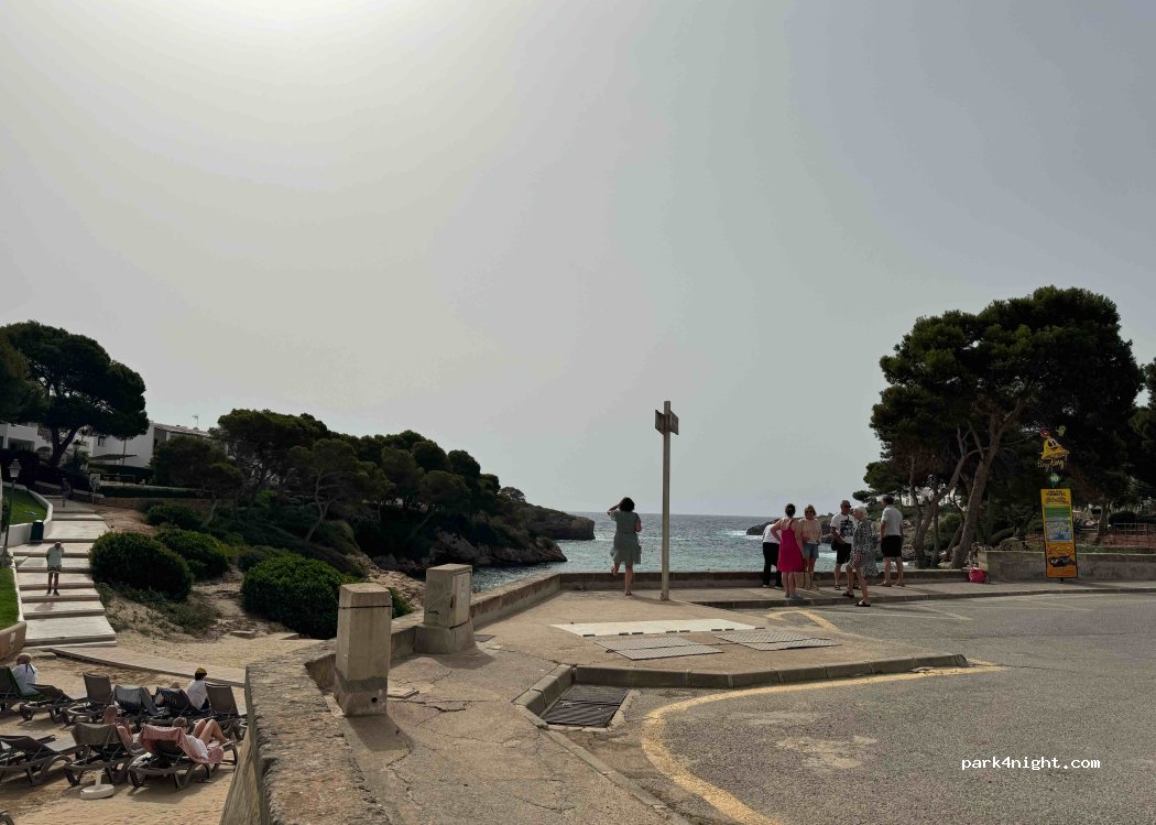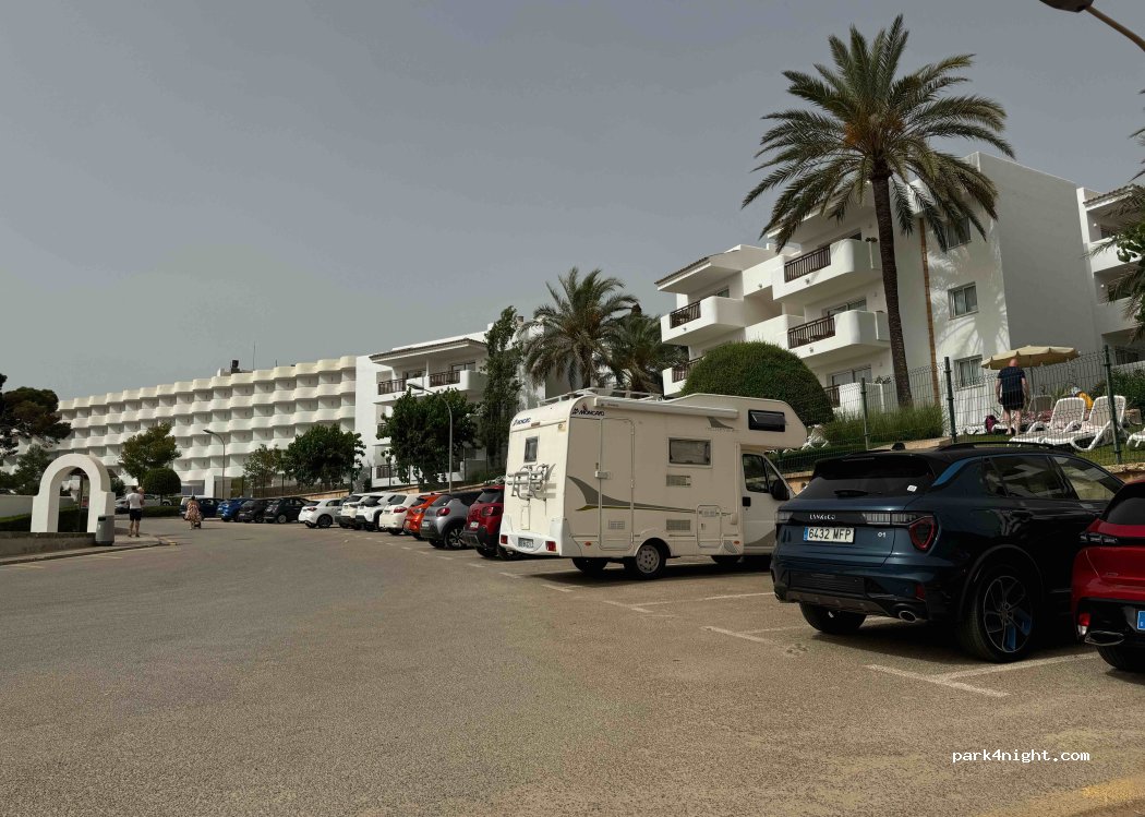 For us (6 metre) motorhome, the parking spaces next to the beach are way to small. Further up the hill there are larger spaces with tree shade, much better and only 5 minutes from the beach. This spot also gives access to Restaurants, Shops, Bars & Nightlife which are only 10 minutes away. Quiet in the night and if you like the Cala D or Zone, its a great place to be.