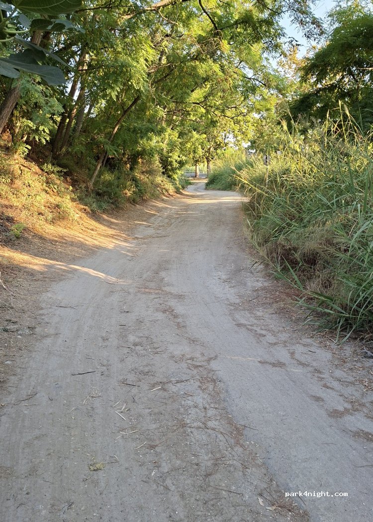 Parcheggio sterrato abbiamo due entrare lungo la strada principale. Dovete considerare che avete la prima parte di parcheggio a livello strada, se proseguite la strada arrivate sotto ad un ponte dove si può parcheggiare e se si continua trovare altri mini parcheggi mi raccomando servono delle macchine o furgoni con una buona trazione ! poi si arriva alla pista ciclabile e li si può scegliere