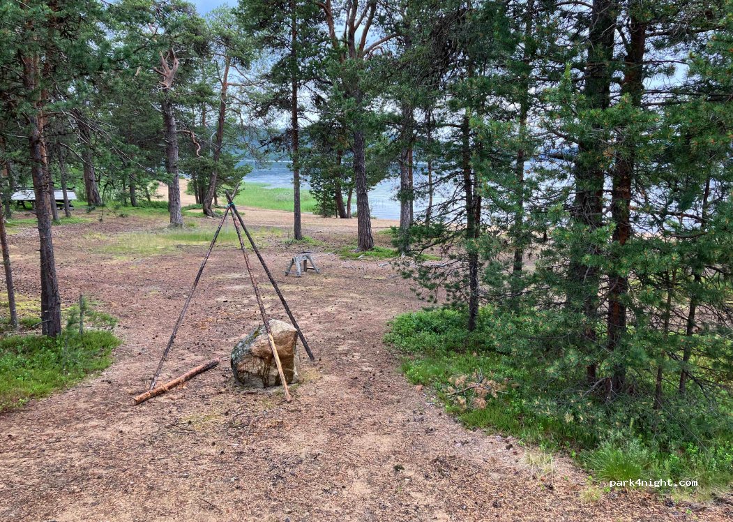 Parking in the second row, about 10m to the wide beach. Fire pits available.