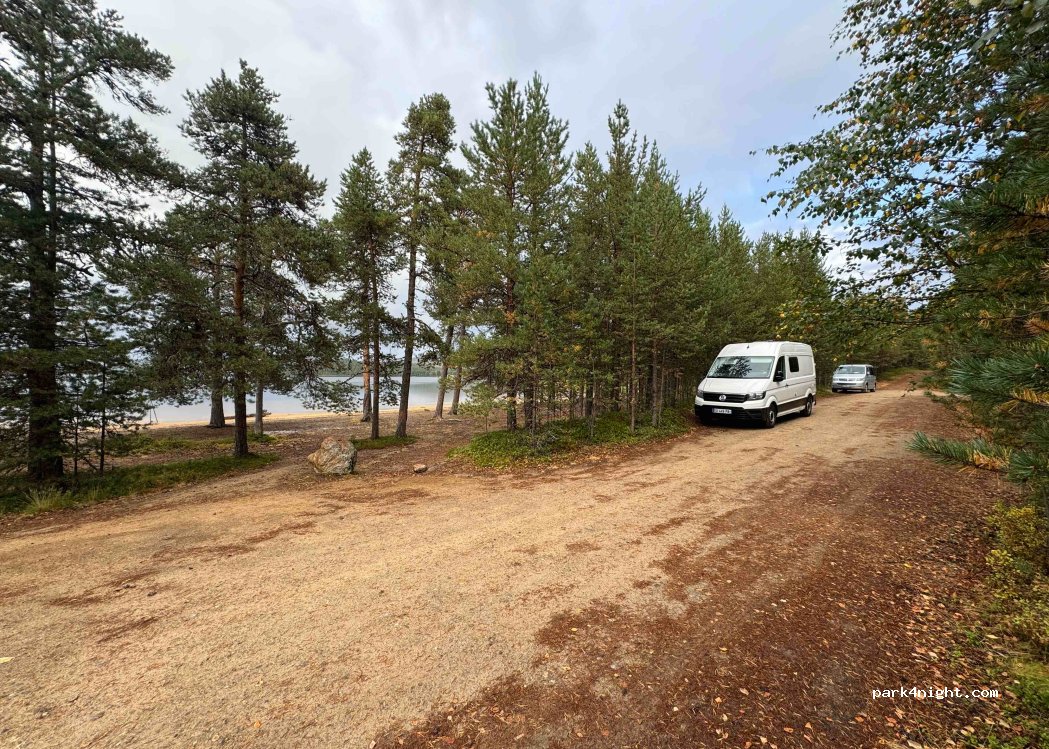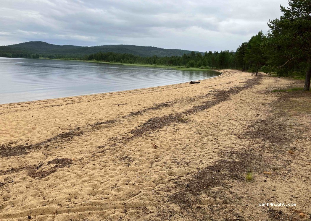 Parkplatz in 2.Reihe, ca. 10m zum breiten Strand. Feuerstellen vorhanden.