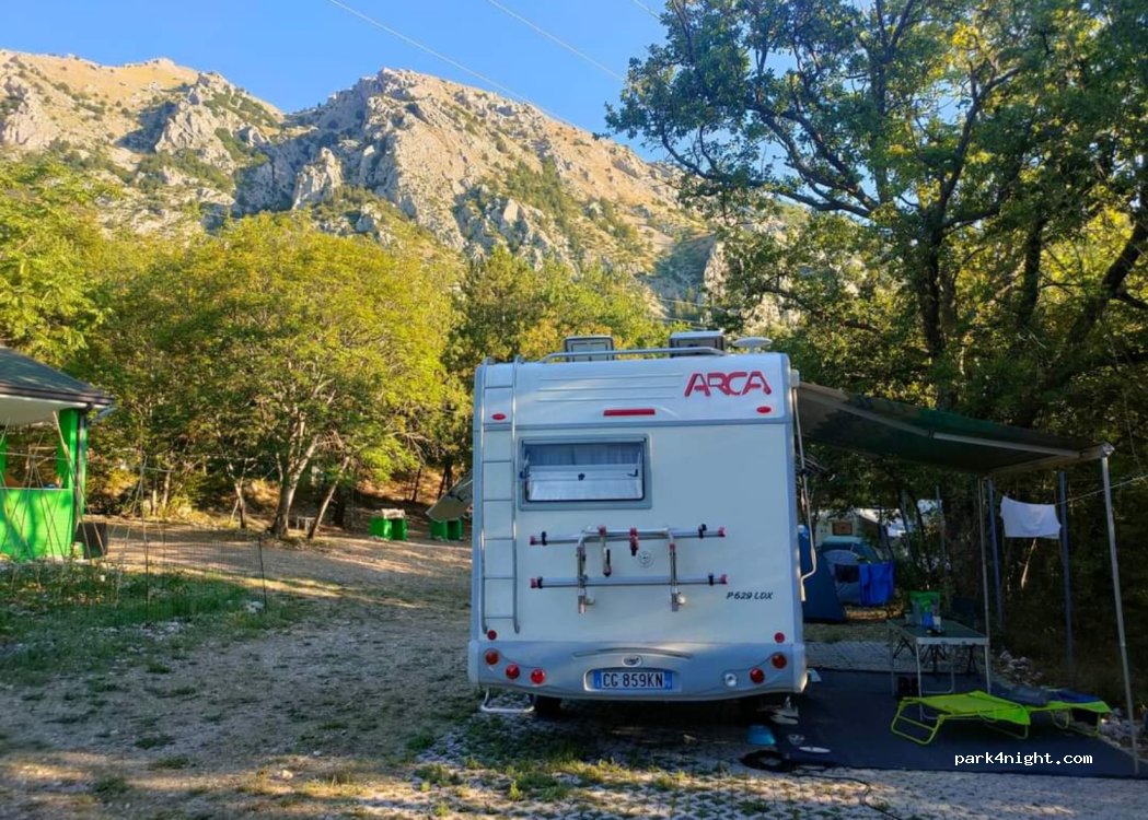 Posto e persone meravigliose. La Maiella è lo spettacolo che basterebbe per rendere questo posto speciale ma c'è molto di più. Dietro c'è una filosofia di vita, l'amore e il rispetto della natura.I miei due cani si sono sentiti da subito a loro agio con i cani presenti (un miracolo). Probabilmente hanno percepito l'essenza del posto. Comoda nuova zona acque grigie, rifornimento e scarico wc.