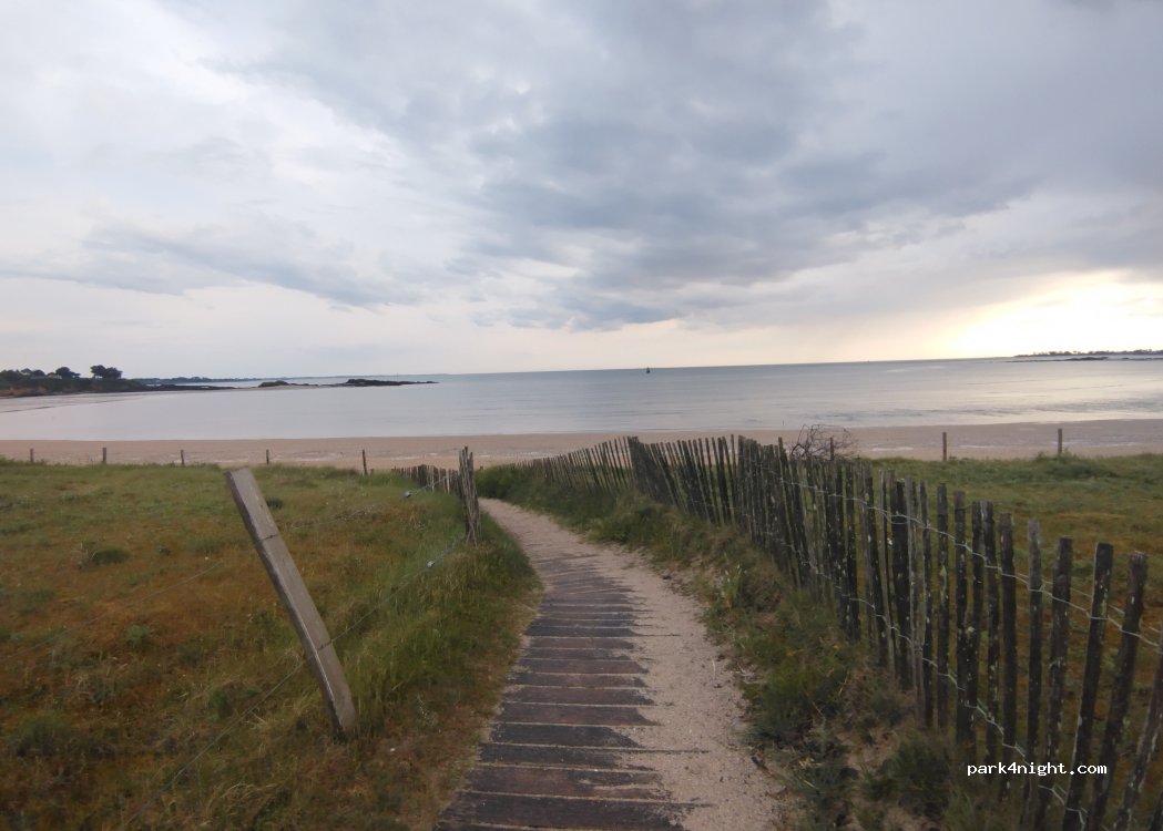 3 étoiles pour la tranquillité, grande plage, ce jour 3 camping-cars dont 1 de de 6 m, endroit tranquille, interdit pour enlisement mais je vois pas comment, ou 6 places.