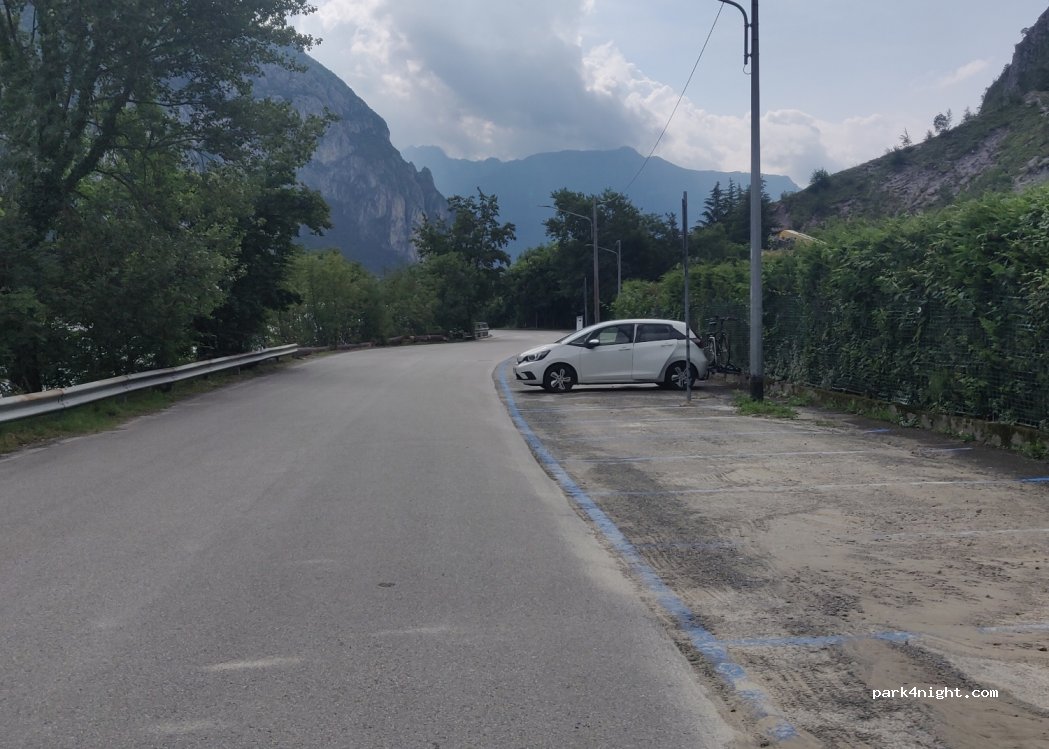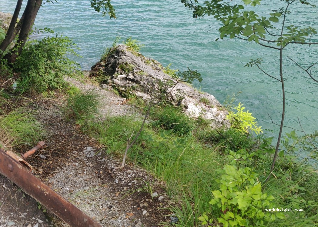 Long parking lot (asphalt) at the end of the road. Right on the western shore of Lake Como. View of the lake. Access to the lake possible in places - rocky, quite steep. Totally quiet at night, because the road runs through a tunnel here. If you hear anything at all, it's from the other side of the lake. In the morning, the Lovers Beach at the end of the road opens (9 a.m. - 7 p.m.). Parking fees 7 a.m. - 8 p.m.