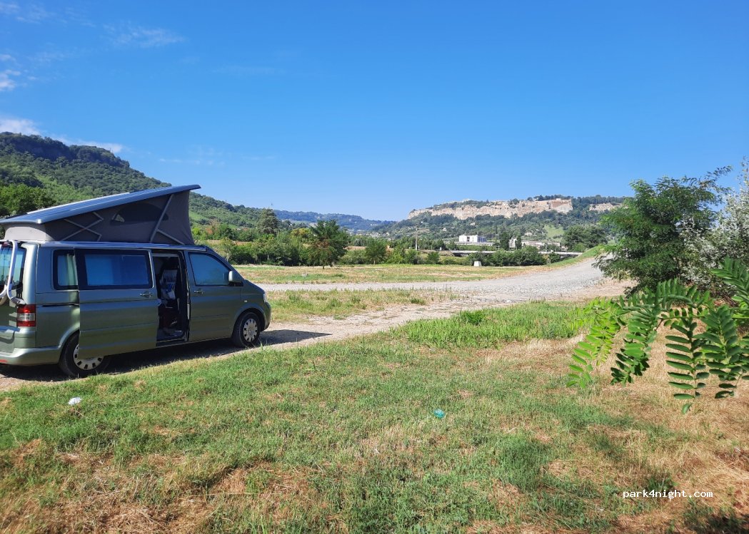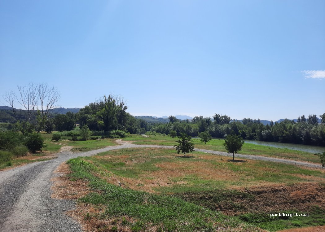 Un endroit parfait avec une vue agréable sur Orvieto ! Nous n'avions pas été dérangées, plusieurs locaux viennent pêcher ou promener leur chiens, nous étions plusieurs vans mais il y a tellement de places que nous avions quand même l'impression d'être seules! Nous sommes restées dans l'herbe près du champs mais il y a la possibilité d'aller se mettre vraiment au bord de l'eau!