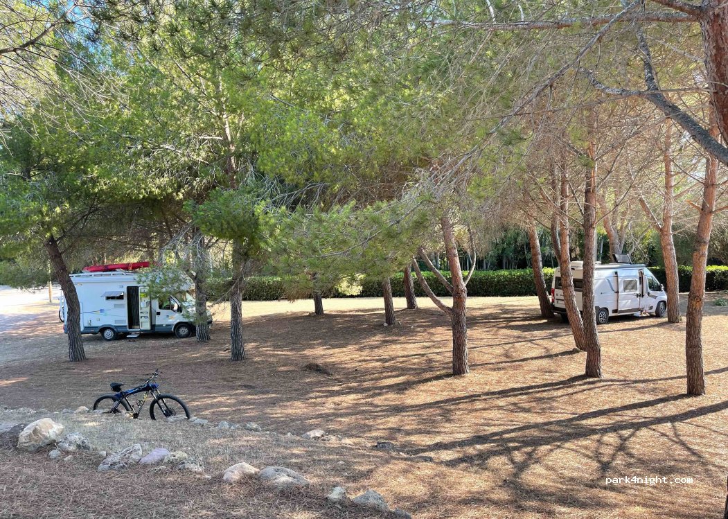 Zona de árboles perfecta para comer a la sombra. En algunas partes el vehículo puede quedar bastante nivelado. Al lado hay supermercado y Bar.