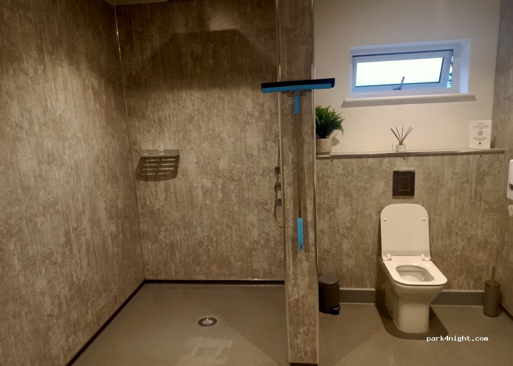 Easily one of the best sites I've stayed at. Camping spots were spaciously laid out, service area was well designed, owner was friendly and welcoming. Highlight of the site was the new facilities block which was the most luxurious I've ever used, not surprising it has won some award. Would be delighted to stay again! Location is a small deviation from motorway but quiet.