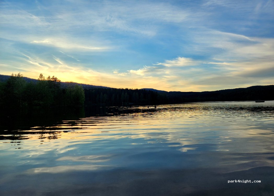 Hay dos parkings. Uno de CV, muy pequeño, lleno de coches. Detrás, otro más grande con cartel confuso. Nos enteramos que había habido multas. Preguntando a un operario de grúas para coches nos dijo: pernocta de máximo 24h, la policia viene, apunta la matrícula y comprueba en 24h si sigues allí. Metro a Oslo al lado. El lago es precioso, para un paseo y ver el atardecer). Dormimos sin problemas.