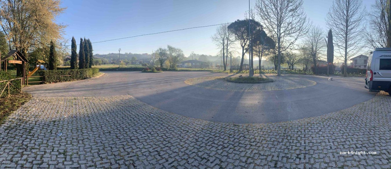 Grand parking, très pratique. Il y a un super parc à côté, on n'a pas pu en profiter car beaucoup de pluie. Quelques chiens errants, mais gentils ! Le parking est éclairé toute la nuit.