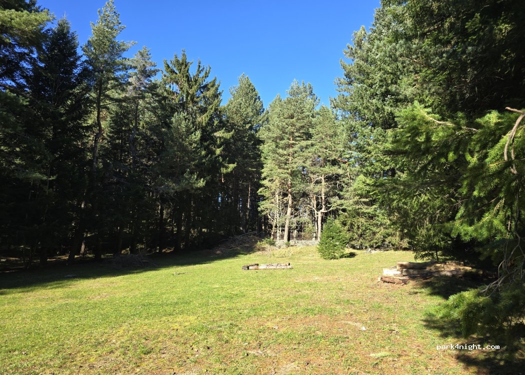 posto stupendo per sostare. ampia area verde dove parcheggiare. accesso ad acqua potabile. spazi per accendere il fuoco. laghi a 5 minuti di distanza. diversi sentieri stupendi immersi nel bosco. ristorante a 2 minuti. posto top.