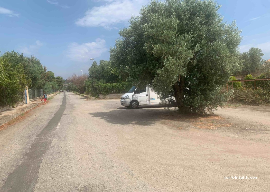 Parking on a dirt road 300 meters from the sea, at the end of a dead-end road.