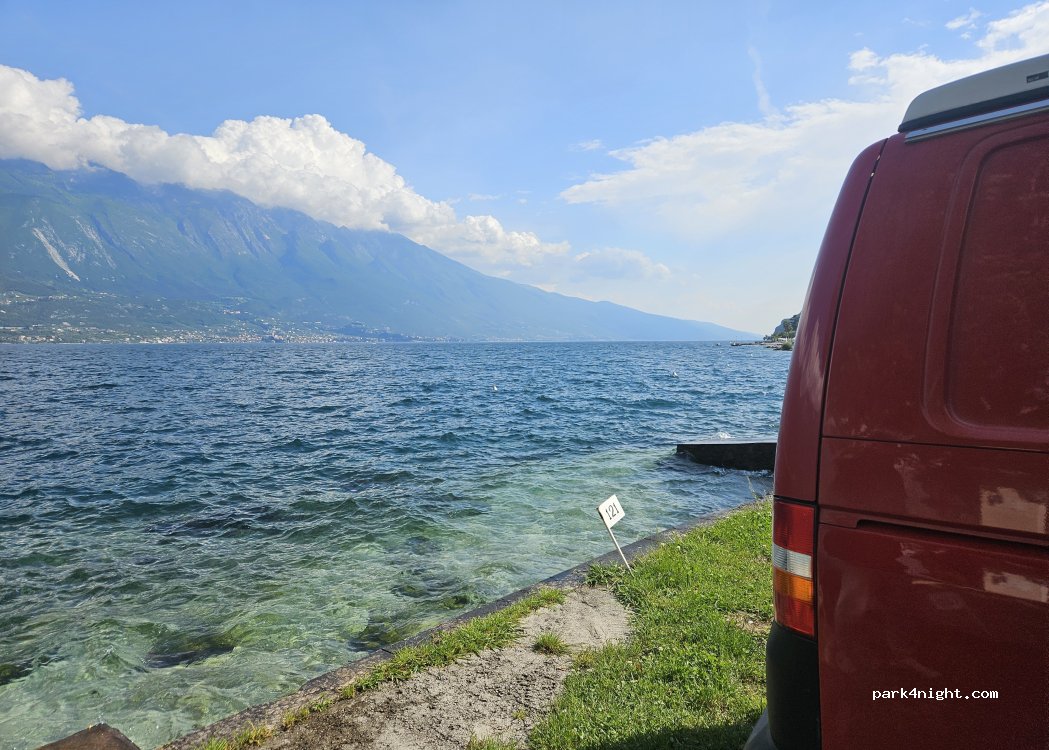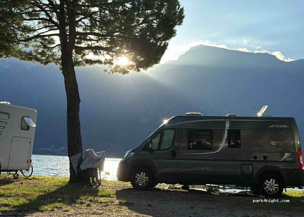 Mega schöner Platz - direkt am Wasser mit eigenem Zugang. Viel Platz um uns herum und tolle Anlagen mit Restaurant und kleinen Market. Strom und Wasseranschluss. Zahlten für unseren Van für zwei Personen an diesem mega Stellplatz gern etwas mehr (56€ pro Nacht). Nach Limone sind es ca 10-15 Minuten zu Fuß. Rollervermietung auch direkt ums Eck - Tombole Rent. Kommen wieder hierher :-)
