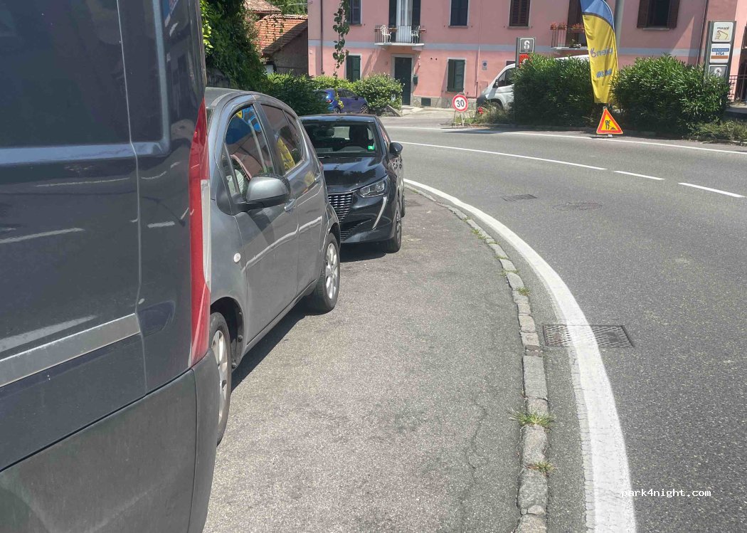 Parcheggi lungo la strada, abbastanza ampi per un furgone. Circa 1/4 ora a piedi dalla zona pedonale