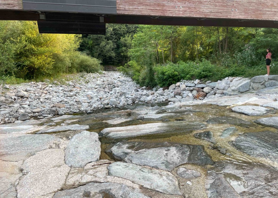 Small, quiet rest area, right next to a cycle path, not far from a river. To access you have to follow the cycle path and go down, then you can park either under the bridge or on the left in reverse.