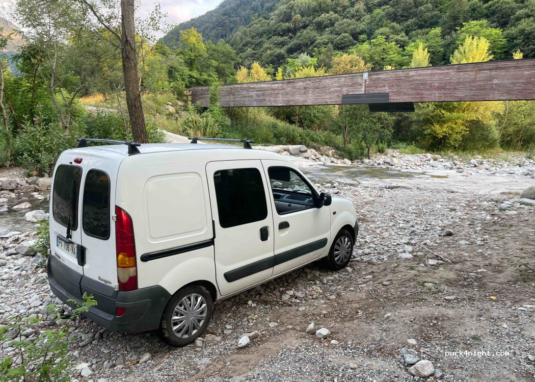 Spot très sympa, place pour un van dans le lit de rivière (uniquement l’été je suppose) mais il y a un petit parking juste au dessus ou on peut mettre 4/5 vans.