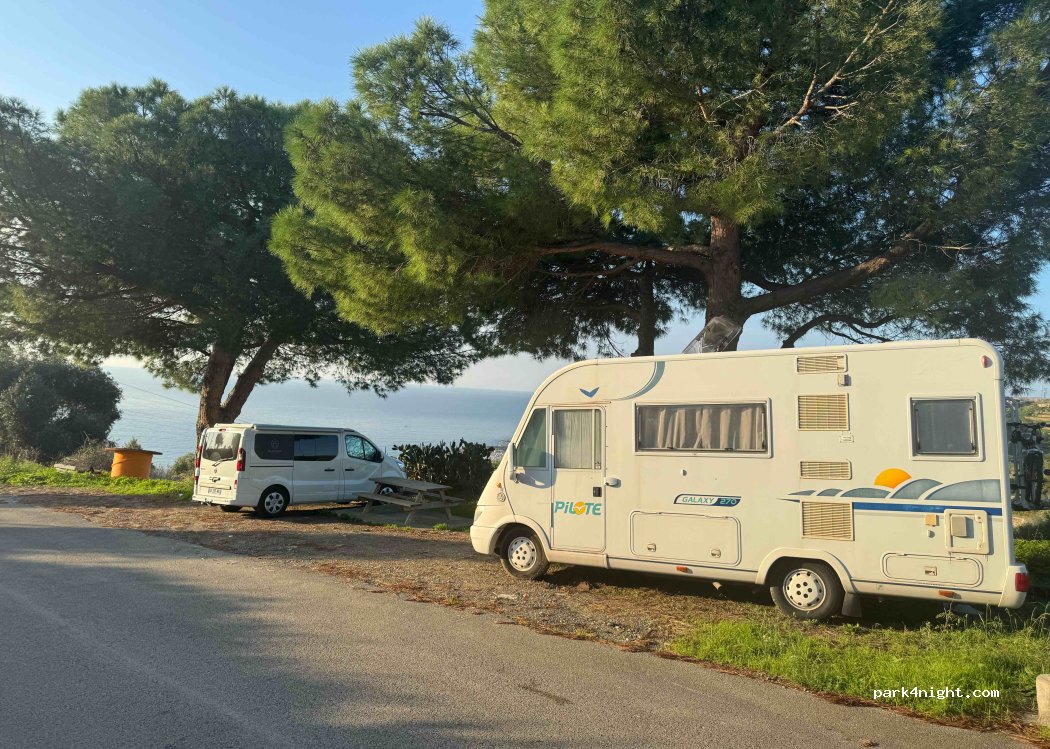 Super bel endroit, vue sur mer. De la place pour 2/3 vans si on se sert. Poubelle à disposition. Route très sinueuse, nous avons du faire demi tour (van L1H2) car virages serrés dans des côtes extrêmement pentues (30%). La route à éviter est “via del cactus” 1km avant le spot, c’est une route qui part sur la gauche. Ne la prenez pas, continuez tout droit, le gps calculera un nouvel itinéraire.