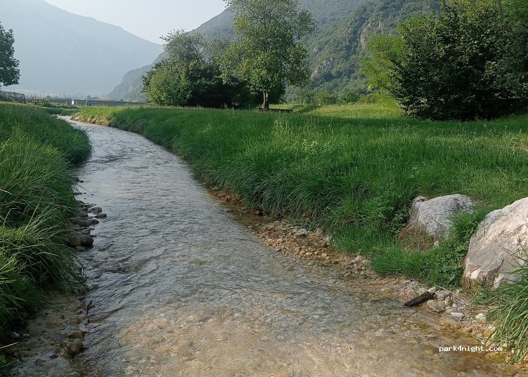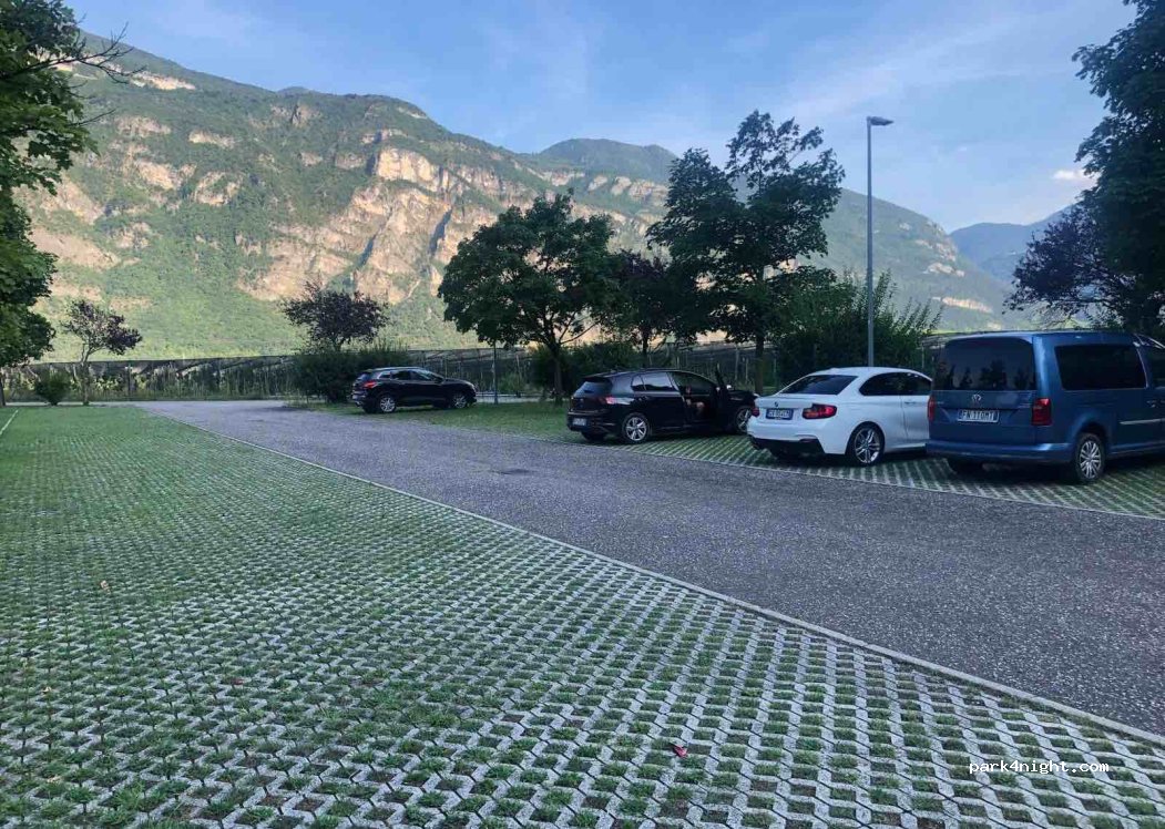 Ottimo parcheggio con posizione tranquilla senza via vai. Bello il parco adiacente con una fantastica vista della valle, nelle giornate calde si possono mettere i piedi a mollo nel ruscello con l'acqua fresca e poi farsi un pisolino sotto uno dei pioppi giganti. Consigliato, per me si può rimanere anche la notte, non vedo divieti