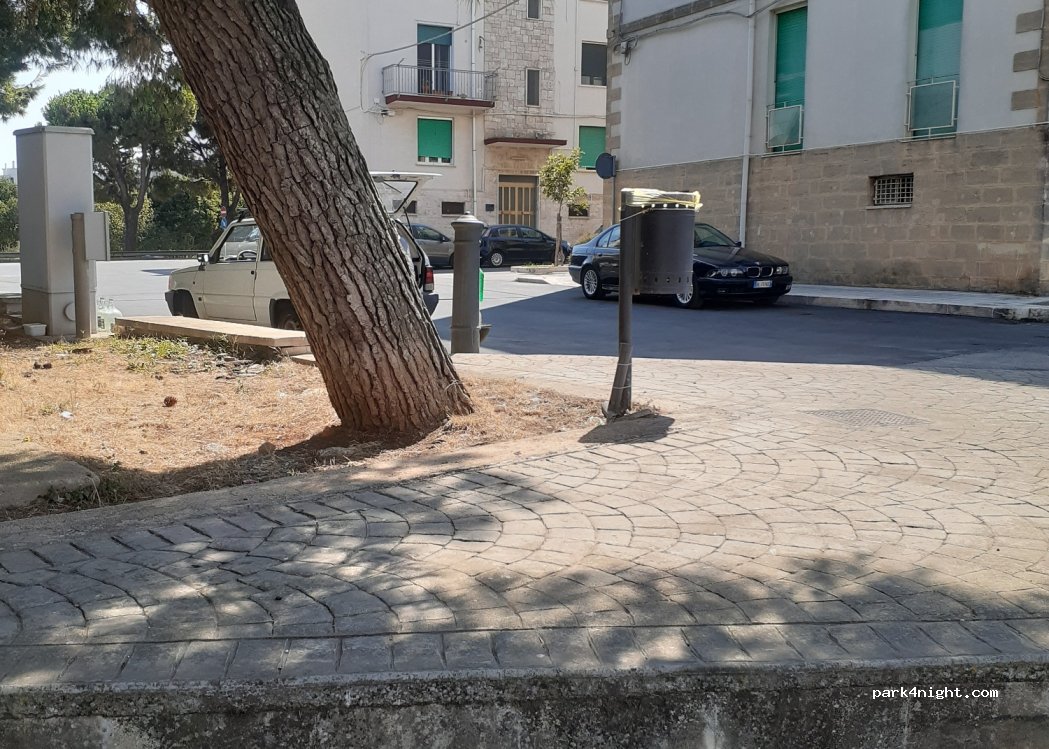 Fontaine avec eau potable à proximité d'un petit parking ombragé. excellent pour une pause déjeuner lors de la visite d'Ostuni.