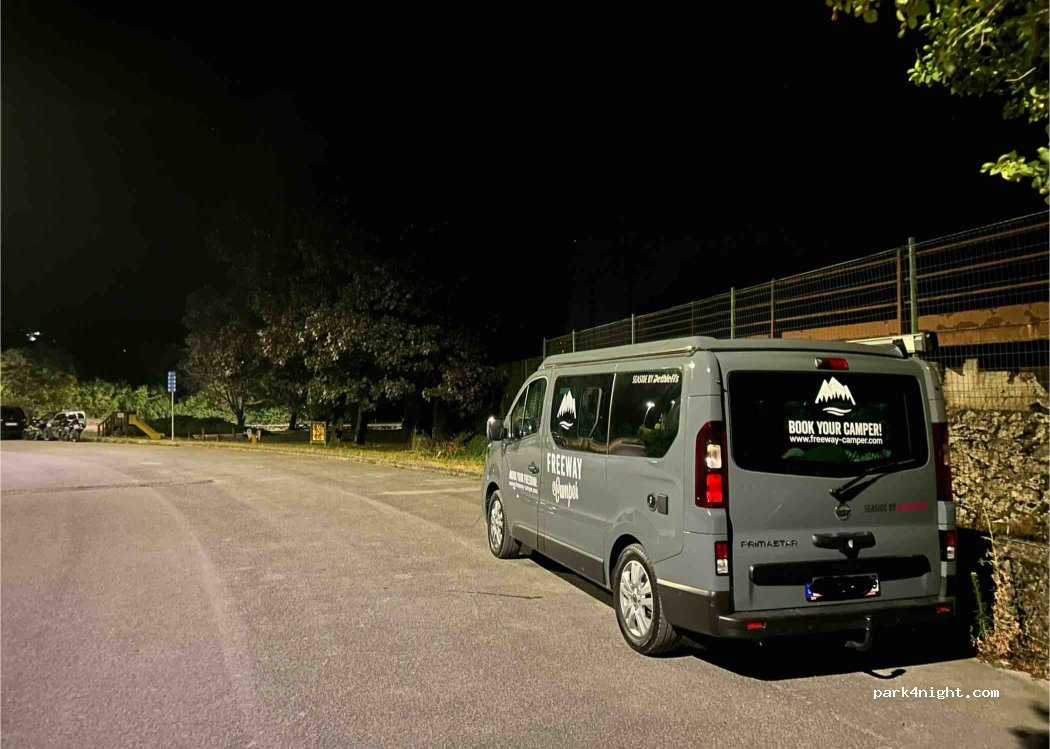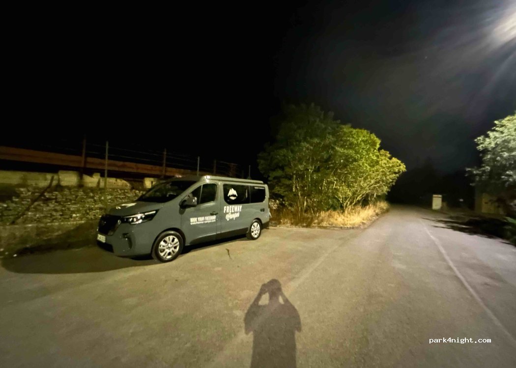 Un piccolo parcheggio più nascosto sul ciglio di una strada vicino ad un campo sportivo. Perfetto per trascorrere indisturbati una sola notte di passaggio, come abbiamo fatto noi. Sfortunatamente è proprio accanto a un binario, quindi se hai il sonno leggero non è raccomandato.